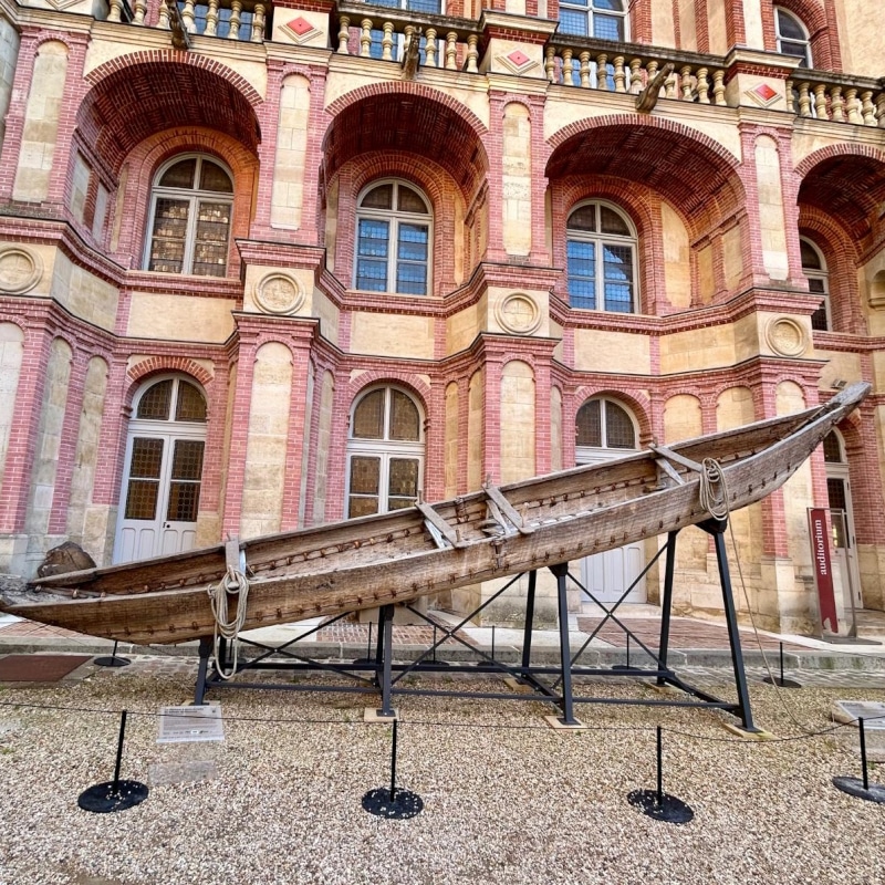 Le lendemain, direction l’ouest parisien vers le plus grand musée archéologique de France, à Saint-Germain-en-Laye. Le groupe bénéficiant d’une exposition guidée intitulée Les maîtres du feu : que vivait l’Occident au temps de la guerre de Troie ? Ils découvraient une réplique du « Bateau de Douvres », une barque à l’échelle ½, 20 rameurs capables de transporter jusqu’à 5 tonnes de bronze pour développer le commerce à travers toute l’Europe. Enfin, chance incroyable, la salle du premier âge de fer était ouverte et le groupe a pu aller saluer l’inestimable dame à la capuche.